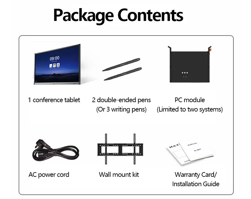 Accessories | Wall bracket/movable floor stand/pen/remote control/WIFI antenna |